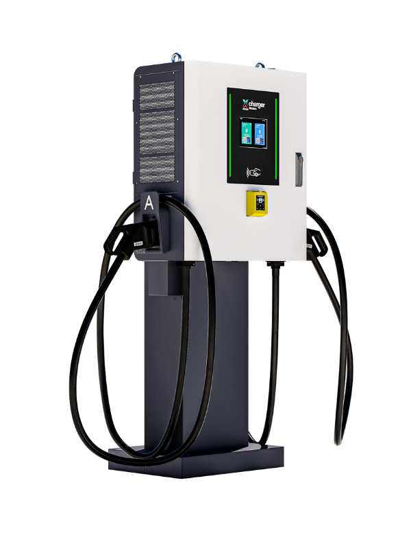 Xchange Charger Modern to profesjonalna dwustanowiskowa stacja ładowania prądu stałego (DC) do ładowania pojazdów elektrycznych. Ładowarka wyposażona jest w dwa punkty ładowania wykonane w standardzie CCS-2 Combo o mocy do 60 kW. Urządzenie pozwala na dynamiczny podział dostępnej mocy wyjściowej w przypadku ładowania dwóch pojazdów jednocześnie. Dzięki wbudowanym 5-metrowym złączom ładującym umożliwia wygodne i ergonomiczne ładowanie.
