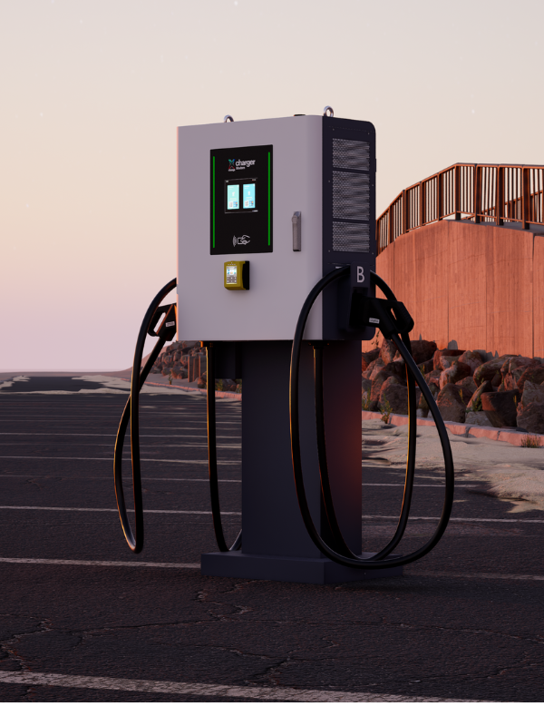 Xchange Charger ModernCharakterystykaXchange Charger Modern to profesjonalna dwustanowiskowa stacja ładowania prądu stałego (DC) do ładowania pojazdów elektrycznych. Ładowarka wyposażona jest w dwa punkty ładowania wykonane w standardzie CCS-2 Combo o mocy do 60 kW. Urządzenie pozwala na dynamiczny podział dostępnej mocy wyjściowej w przypadku ładowania dwóch pojazdów jednocześnie. Dzięki wbudowanym 5-metrowym złączom ładującym umożliwia wygodne i ergonomiczne ładowanie.
