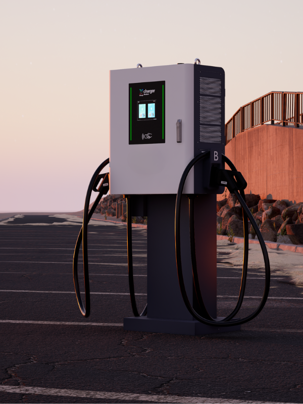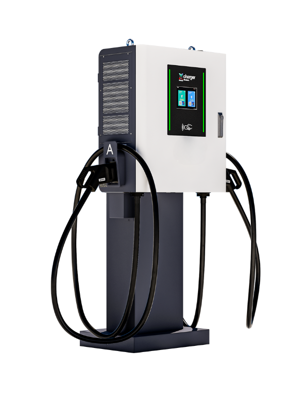Xchange Charger ModernCharakterystykaXchange Charger Modern to profesjonalna dwustanowiskowa stacja ładowania prądu stałego (DC) do ładowania pojazdów elektrycznych. Ładowarka wyposażona jest w dwa punkty ładowania wykonane w standardzie CCS-2 Combo o mocy do 60 kW. Urządzenie pozwala na dynamiczny podział dostępnej mocy wyjściowej w przypadku ładowania dwóch pojazdów jednocześnie. Dzięki wbudowanym 5-metrowym złączom ładującym umożliwia wygodne i ergonomiczne ładowanie.