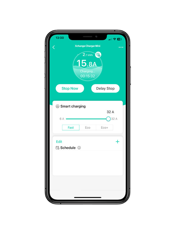 Stacja ładowania Xchange Charger Mini przeznaczona jest użytku domowego. Stanowi kompaktowe urządzenie, które zapewnia możliwość ładowania samochodu na podjeździe lub przy miejscu postojowym w garażu. Do głównych zalet tego produktu zalicza się jego prostota, ale i najwyższy stopień wykonania oraz bezpieczeństwo. Posiada funkcję regulacji mocy, umożliwia ładowanie w formule Podłącz & Ładuj lub autoryzację za pomocą kart RFID, a także obsługę i dostęp do danych historycznych dotyczących zużycia energii za pomocą aplikacji mobilnej.